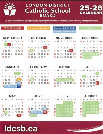 2025-26 School Year LDCSB Calendar